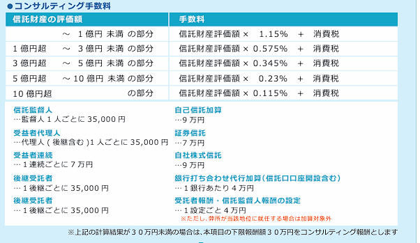 ※信託財産の評価額が3,000万未満の場合は、金額を問わず30万円+消費税とさせて頂きます。